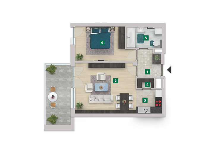 Az adatlapon megjelölt alaprajzi méretek vakolatlan falak közötti méretek, a kivitelezés során kismértékű méretváltozás lehetséges. Ezen dokumentációban közölt adatok a kiviteli tervek alapján kerültek megállapításra kizárólag tájékoztató jelleggel, nem minősülnek ajánlattételnek. Az alaprajzon feltüntetett bútorok tájékoztató jellegűek, azok rajzi elhelyezése nem feltétlenül tükrözi azok jövőbeni elhelyezhetőségét, illetve azok nem képzik a lakás részét.