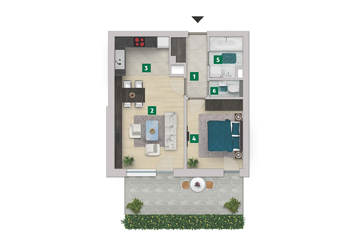 Az adatlapon megjelölt alaprajzi méretek vakolatlan falak közötti méretek, a kivitelezés során kismértékű méretváltozás lehetséges. Ezen dokumentációban közölt adatok a kiviteli tervek alapján kerültek megállapításra kizárólag tájékoztató jelleggel, nem minősülnek ajánlattételnek. Az alaprajzon feltüntetett bútorok tájékoztató jellegűek, azok rajzi elhelyezése nem feltétlenül tükrözi azok jövőbeni elhelyezhetőségét, illetve azok nem képzik a lakás részét.