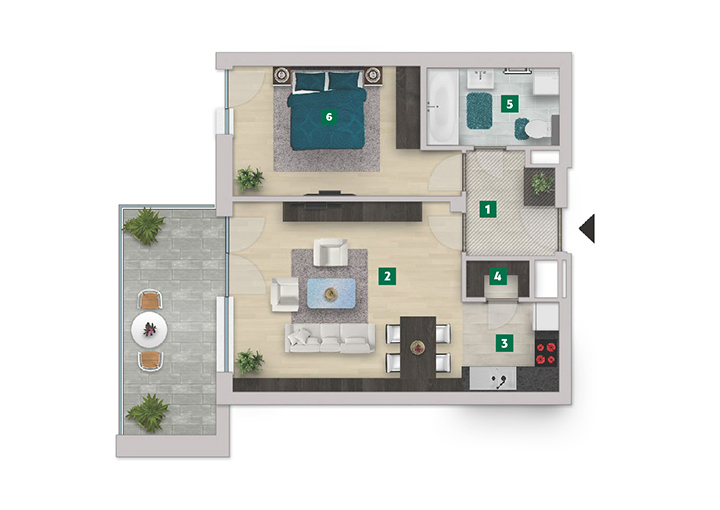 Az adatlapon megjelölt alaprajzi méretek vakolatlan falak közötti méretek, a kivitelezés során kismértékű méretváltozás lehetséges. Ezen dokumentációban közölt adatok a kiviteli tervek alapján kerültek megállapításra kizárólag tájékoztató jelleggel, nem minősülnek ajánlattételnek. Az alaprajzon feltüntetett bútorok tájékoztató jellegűek, azok rajzi elhelyezése nem feltétlenül tükrözi azok jövőbeni elhelyezhetőségét, illetve azok nem képzik a lakás részét.