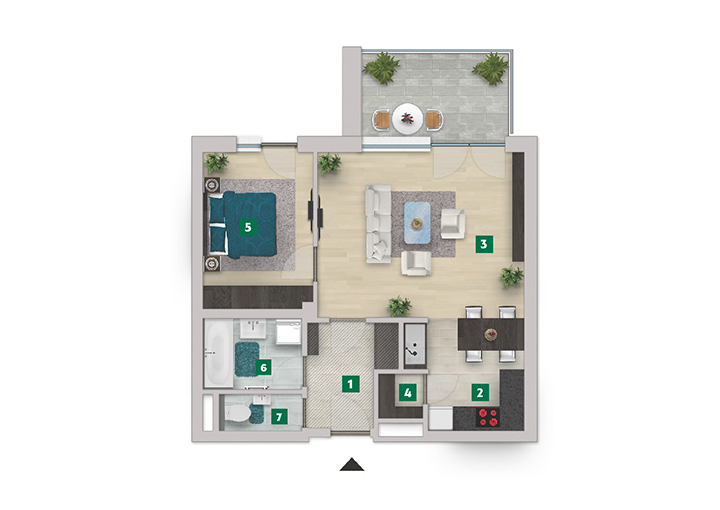 Az adatlapon megjelölt alaprajzi méretek vakolatlan falak közötti méretek, a kivitelezés során kismértékű méretváltozás lehetséges. Ezen dokumentációban közölt adatok a kiviteli tervek alapján kerültek megállapításra kizárólag tájékoztató jelleggel, nem minősülnek ajánlattételnek. Az alaprajzon feltüntetett bútorok tájékoztató jellegűek, azok rajzi elhelyezése nem feltétlenül tükrözi azok jövőbeni elhelyezhetőségét, illetve azok nem képzik a lakás részét.